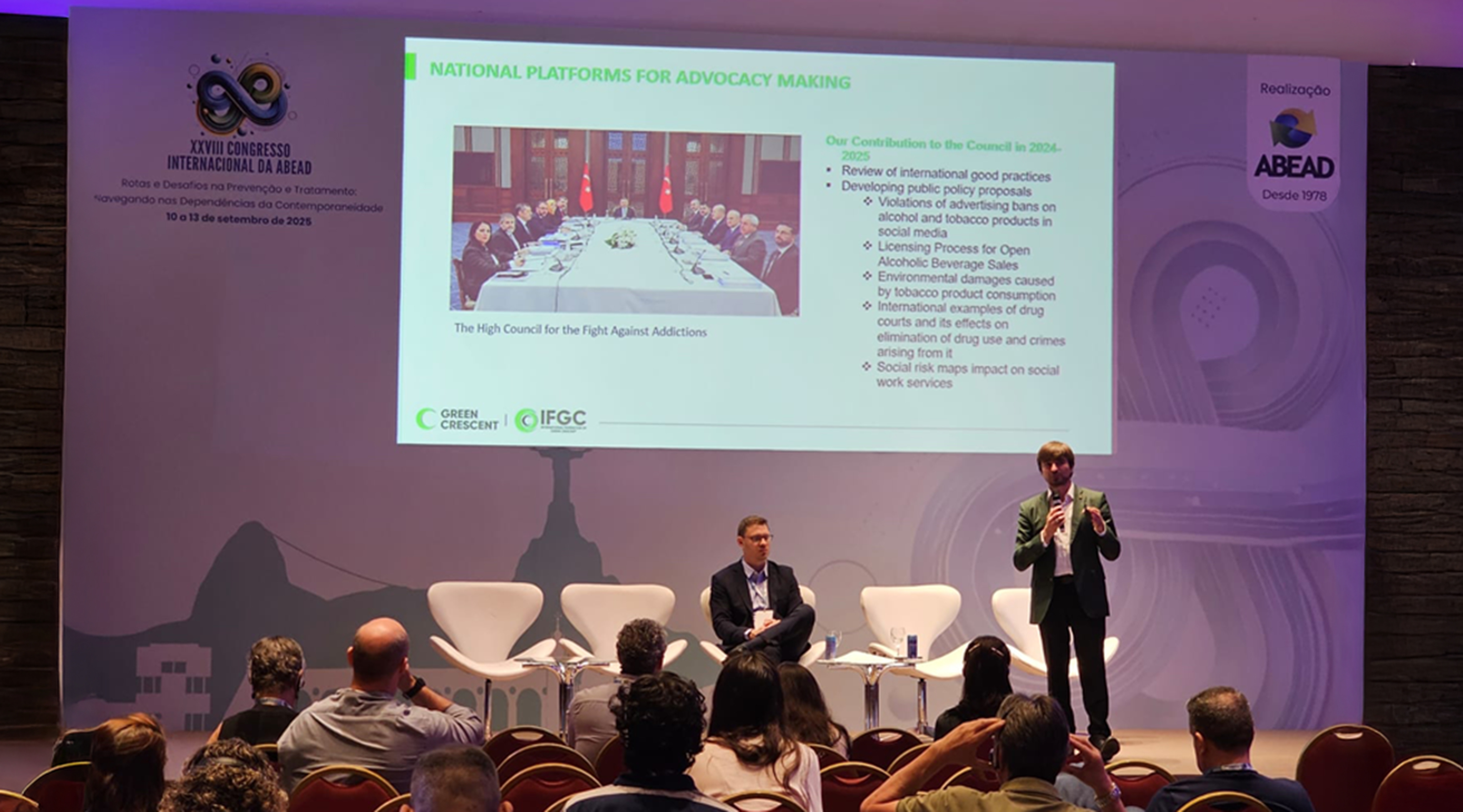 Conectados Pela Vida (Green Crescent Brazil) and the International Federation of Green Crescent (IFGC) shared their experiences in prevention programs during the XXVIII IFGC ABEAD International Congress, held in Rio de Janeiro on 10–13 September 2025.